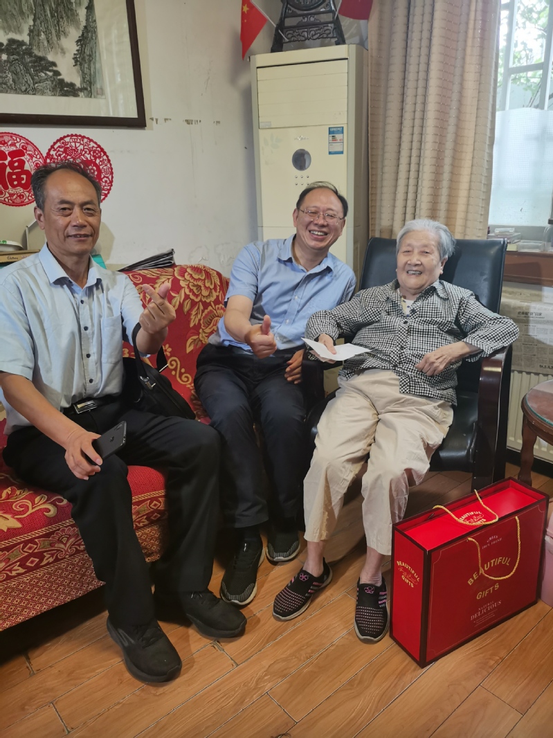 在重阳节来临之际,为弘扬中华民族敬老、爱老的优良传统,积极倡导“爱老、敬老、助老”的良好风气,9月20日下午,直播 党委书记邓国林带队,学院退协负责人张明、组织员李玲一同走访慰问今年恰逢八十周岁、九十周岁大寿的张亚华老师、周国荣老师和九十周岁以上的顾德行老师、曾炳祥老师,在重阳节前送去学院师生的祝福。